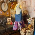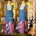 和洋折衷リメイク 浴衣 デニム オーバーオール サロペット ワンピース パッチワーク コラージュ ドッキング 0-89
