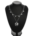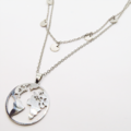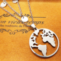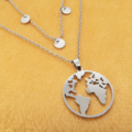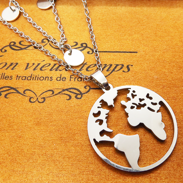 ステンレス製のスタイリッシュな世界地図ペンダントが目を引く、ダブルチェーンのロングネックレスです。