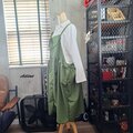 品よくおしゃれに着こなせるおしゃれなカーキ色のエプロンをぜひどうぞ。