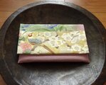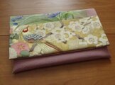 繍もあしらわれた華やかな長着から仕立てたお懐紙入れです。