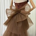 カラードレス テラコッタ色 ベアトップ ふっくら柔らかなバックリボン 編み上げ 細見えシルエット デザイン感 前撮り