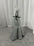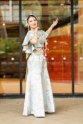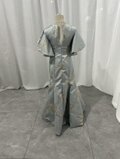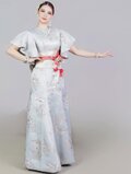 実例写真!着物ドレス、和風ドレス ブルー フリル袖 ラウンドネック ソフトマーメイドライン 床付く 前撮り