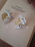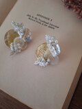素材:ヴィンテージビーズ、アンティークビーズ、シェル、ケシパール、ホワイトトパーズ(10月誕生石)、シークィン、レジン、真鍮