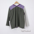 草花柄やドット、ボーダーを組み合わせて仕立てた羽織りカーディガンです。