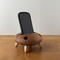 温かみのある丸っこいフォルムがUFOの形を連想させるスマホウッドスピーカースタンド、名付けて Woo-fo『ウーホ』。