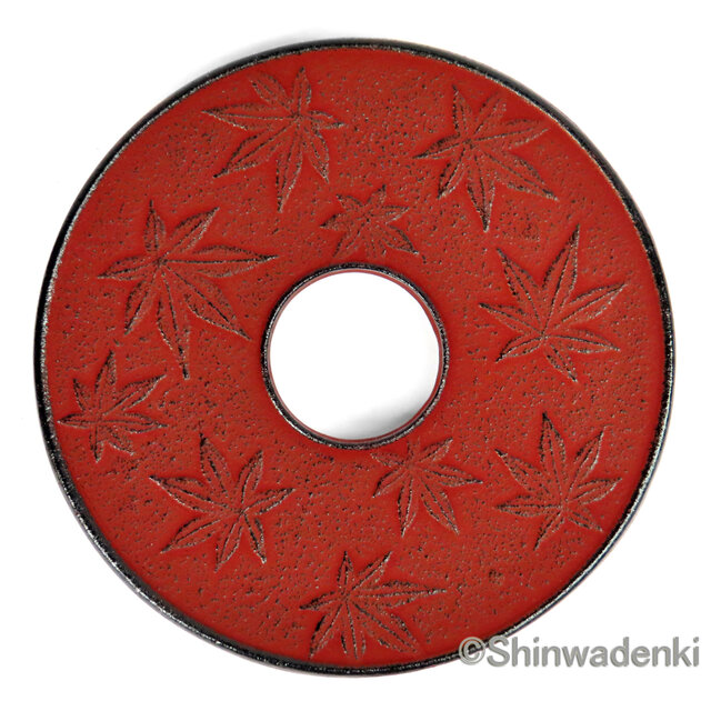 鋳鉄ならではの重厚感と繊細なカエデの葉文様が調和した釜敷です。