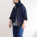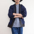 ボーダーのバスクシャツとジーンズに合わせ、藍染の古布をストール感覚で首に巻くと、ヴィンテージ感と現代的なスタイリングが絶妙に融合します。