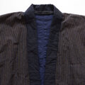 この一着は、昭和初期〜中期頃に東北地方で作られた木綿製の野良着で、藍染の縞模様が落ち着きながらも表情豊かに広がるデザインが特徴です。(裏面は藍染めではございません。)