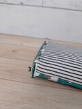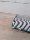甘くなりすぎないエメラルドグリーン地の中のバクさんと同系色のストライプ生地がかわいさと大人っぽさを両立。