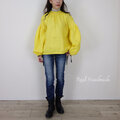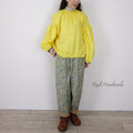 シトロンイエローリネン・レースカラーのバルーンスリーブプルオーバー