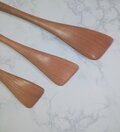 届きました!取っても素敵で手触りも優しくて嬉しくなりました。 手作り木ベラを探していて、いくつか見ましたが、大きすぎたり重かったり 持ち手が細くて使いにくかったりと なかなか私の探しているものに出会えませんでした。 今、手にとって、私が欲しかった理想の形でびっくりです 大切に愛用させていただきます。 この度はお取り引きをありがとうございました。