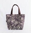 優しい色合いのグレーブラウン色にベージュのローズガーデン柄、綿リネン生地のお出掛けバックです。