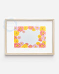 コーラルレッド、黄色、ピンク色のガーベラの花リースでフレームを作りました