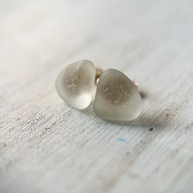 《14kgf》小さなホワイトシーグラスのスタッズピアス