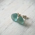 《Silver925》海色シーグラスのスタッズピアス