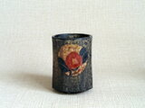 冬の陶房の窓から見える庭に咲く紅椿を描いた、風格のある佇まいの八角湯のみです。
