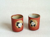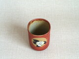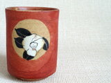 この作品は、信楽の土を使いろくろで作った湯のみに少しづつ加彩し焼成を重ねています。独自に調合した釉を用いて椿を丁寧に手描きしています。軽くて持ちやすく口当たりも滑らかです。赤絵付は均一にせず手仕事の温かさが感じられるようにしています。金や銀を使っての絵付けは技術的に難しく、作業時の温度・湿度管理に気を遣い仕上げています。
