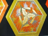 ■帯としての使用は少なく折線見られますが他は綺麗です。帯の片端部分になります。三羽の鶴が向かい合う文様は単なる美的構図だけでなく「調和・絆・繁栄」を象徴し三という数は日本では縁起のよい数字で、「天地人(天・地・人)」や「過去・現在・未来」を表すとされ、バランス・調和・永続の意味を持ちます。