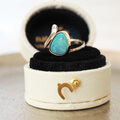 オーストラリア産のボルダーオパールを、ゆるやかな曲線のアームで包み込んだリングです。