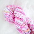キャンディリボンのような可愛らしい糸が紡ぎ上がりました。