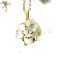 樹脂粘土にてフリーハンドで形づくった『シマエナガさん』に、冬の煌めきをイメージした『オリジナルのお花』と『ビジュー』をちりばめた大人可愛いネックレスです。