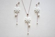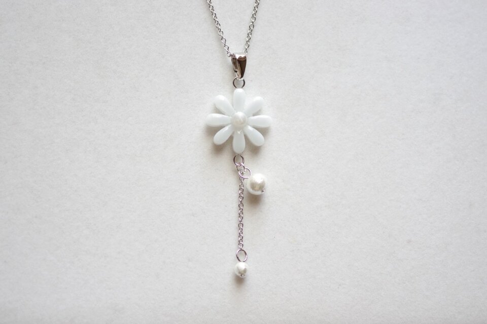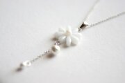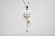 レジンアート お花とコットンパールのペンダント〈雪国〉