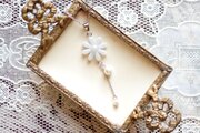 淡い淡い、どこまでも仄かでほとんど白と区別がつかないような水色のお花に、大小二粒のコットンパールをあしらいました。