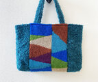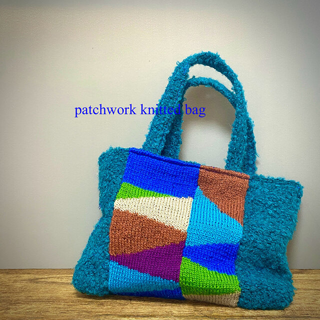 ※送料無料/パッワーク編みのトートーかばん(ターコイズブルー)