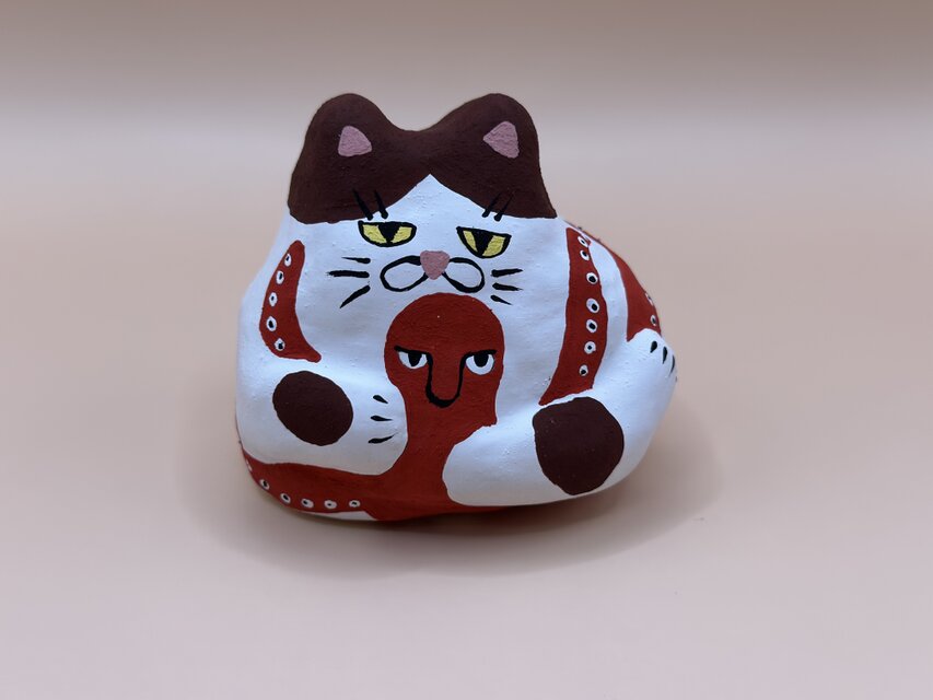 ⚪︎張り子は紙でできていますので、水気に弱いです。濡れた手でさわると変色や衣服などに色移りがありますのでご注意ください。