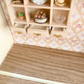 シェルフを貼り付けています。飾り物はすべて貼り付けています。引出しは開きますので、小物をしまえます。