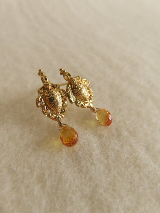 インドのアンティークパーツとブリオレットサファイアのピアスです。