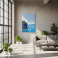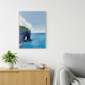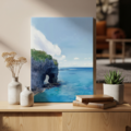 沖縄県の万座毛の風景を描いたオリジナルイラストを、高品質キャンバスにプリントしたアート作品です。