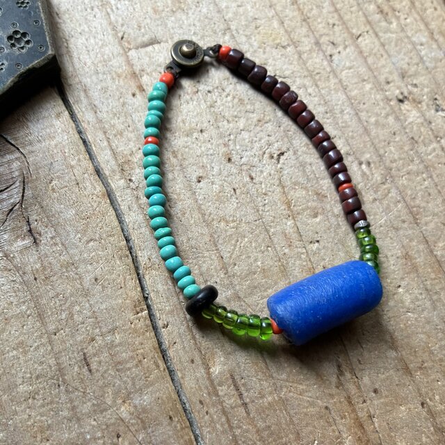 *古のブレス。@アフリカの再生とんぼ玉+ベネチアのシードビーズ3種+ビルマの古いビーズ