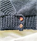 ボリューム感のある袖は、毛糸を二本どりにしてふっくらと編み上げました。