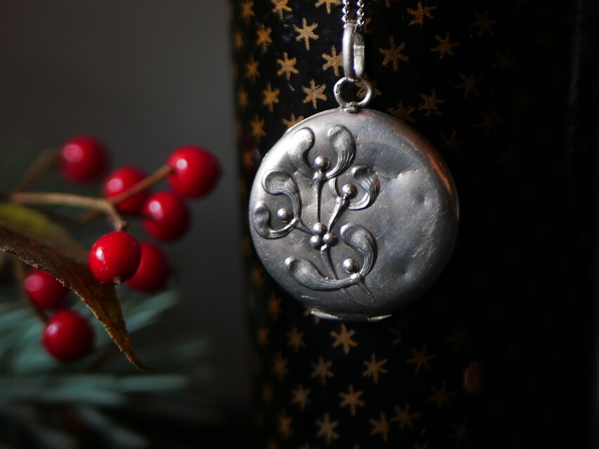 純銀 宿り木 ロケットペンダント ヤドリギ フォトペンダント フランスアンティーク アンティークのある暮らし