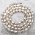 定番のホワイト系バロック淡水パールを贅沢に使用したロングネックレスです。