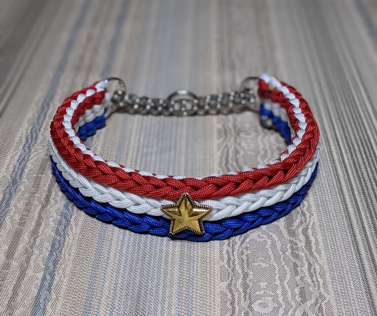 パラシュートコードで編んだチェーンタイプの首輪です。
