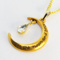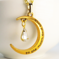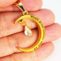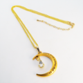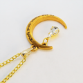 ゴールドカラーの三日月にラインストーン(クリアカラー)が揺れて輝くネックレス 長さ調整可 アジャスター付