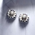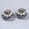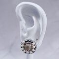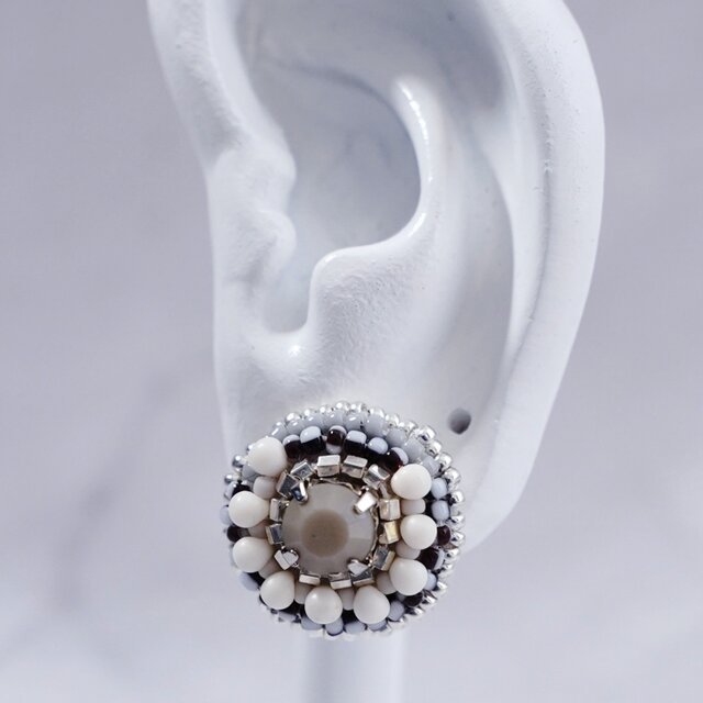 おしゃべりなピアス・イヤリング60|グレーのビジュー×ブラック×大ぶり×選べる金具×ビーズ刺繍×サージカルステンレス