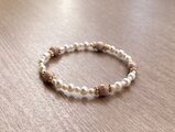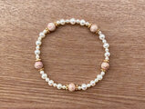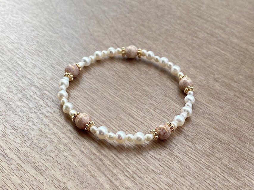 淡いピンクのヴィンテージビーズをアクセントに、艶やかな淡水パールを組み合わせたブレスレット。