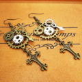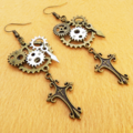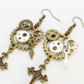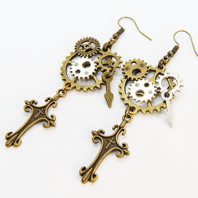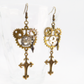 スチームパンク風ロザリオと歯車のアシンメトリーピアス ゴシック レディース メンズ ユニセックス