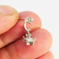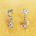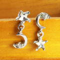 シルバーカラー 揺れて輝く三日月と星のアシンメトリーなスタッドピアス ラインストーン