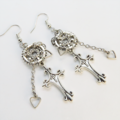 アンティークシルバー ロザリオと歯車・ギアのスチームパンク風チェーンピアス ハート サージカル可