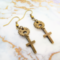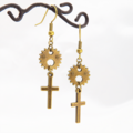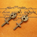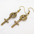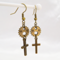 アンティークゴールド ロザリオと歯車のコンパクトなピアス スチームパンク風 シンプル