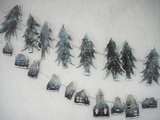 雪が降り積もる町と針葉樹ののガーランドです。