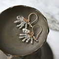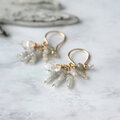 原石ダイヤ・ハーキマーダイヤなど輝きの綺麗な天然石をフリンジにまとめた小さなピアス。ダイヤの細かな粒子状の断面が濡れたようににキラキラと輝いてとても存在感があります。スターダストのようにきらめく石とゴールドが耳元でさりげなく揺れてきれいです。