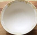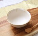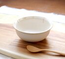 リムのついた丸いボウルに形に成形し、ほんのり生成り色のマット釉をかけて焼き上げました。