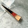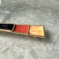 ゴールドトーンをベースにブラック、レッド、マーブルベージュのエナメルペイントされたブローチ。
