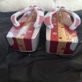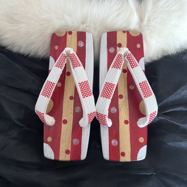 S 赤金銀 水玉の四角い下駄 三味右近