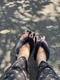 2 Lサイズ 鼻緒も緩めに仕上げて頂きました(*^^*) 自分のサイズが合い 履き心地の良さはもちろんですが 気品がある深い紫色 そこに咲く椿の花が見事で華やかです 側面にまで咲いてます(*^^*) 鼻緒の色柄もマッチしていて最高の作品でした